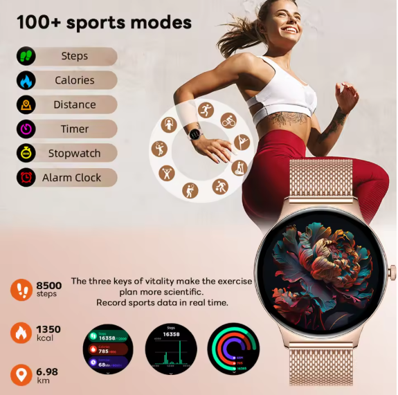 The Smart Watch is a stylish and advanced wearable designed to support a modern, active lifestyle. Combining fashion with smart technology, this smart watch is perfect for women who want elegant design along with powerful features for daily use.